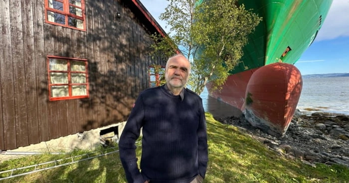 Man in Norway woke up to a ship who hit land, just meters from his house, this morning.