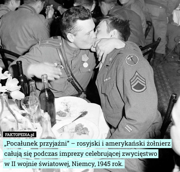 „Pocałunek przyjaźni” – rosyjski i amerykański żołnierz całują się podczas...