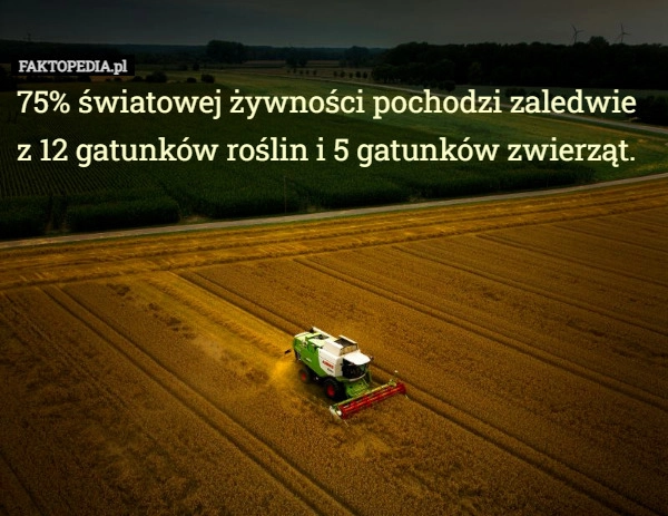 75% światowej żywności pochodzi zaledwie z 12 gatunków roślin i 5 gatunków...