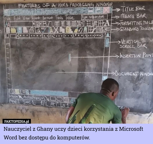 Nauczyciel z Ghany uczy dzieci korzystania z Microsoft Word bez dostępu...