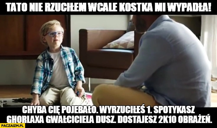 Ojciec gra z dzieckiem w grę, tato nie rzuciłem wcale, kostka mi wypadła. Chyba Cię pogięło, wyrzuciłeś 1, spotykasz Ghorlaxa dostajesz 2010 obrażeń