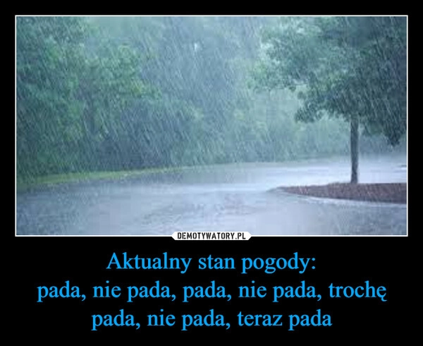 Aktualny stan pogody: pada, nie pada, pada, nie pada, trochę pada, nie pada, teraz pada
