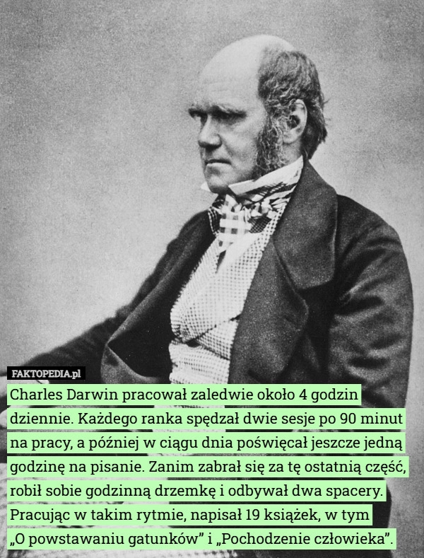 Charles Darwin pracował zaledwie około 4 godzin dziennie. Każdego ranka...