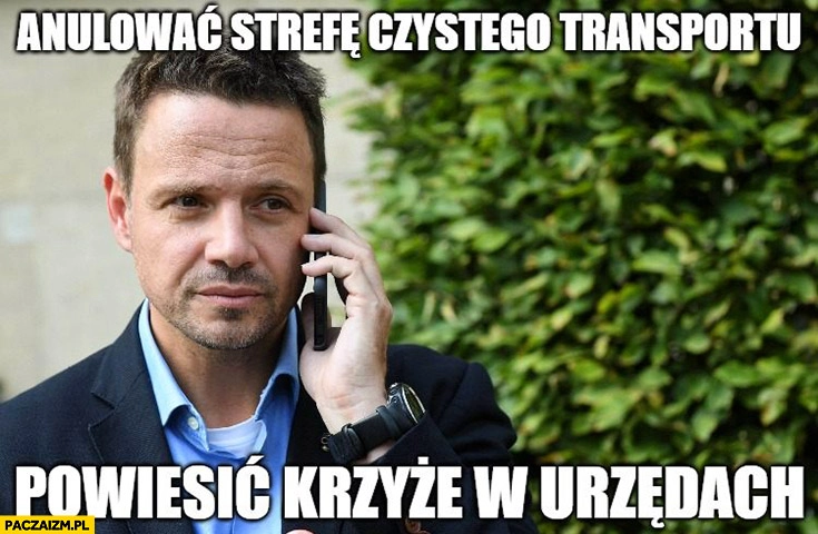Trzaskowski dzwoni anulować strefę czystego transportu, powiesić krzyże w urzędach