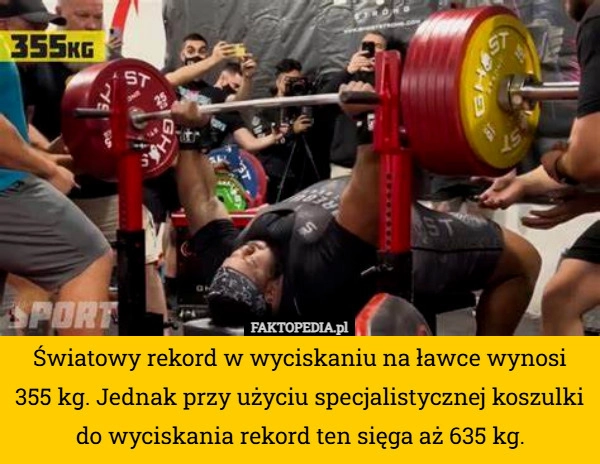 Światowy rekord w wyciskaniu na ławce wynosi 355 kg. Jednak przy użyciu...