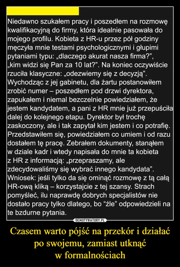 Czasem warto pójść na przekór i działać po swojemu, zamiast utknąć w formalnościach