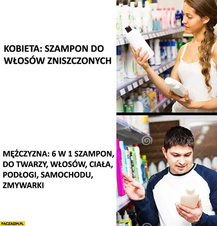 Kobieta kupuje szampon do włosów zniszczonych mężczyzna 6 w 1 szampon do twarzy włosów, ciała, podłogi, samochodu, zmywarki
