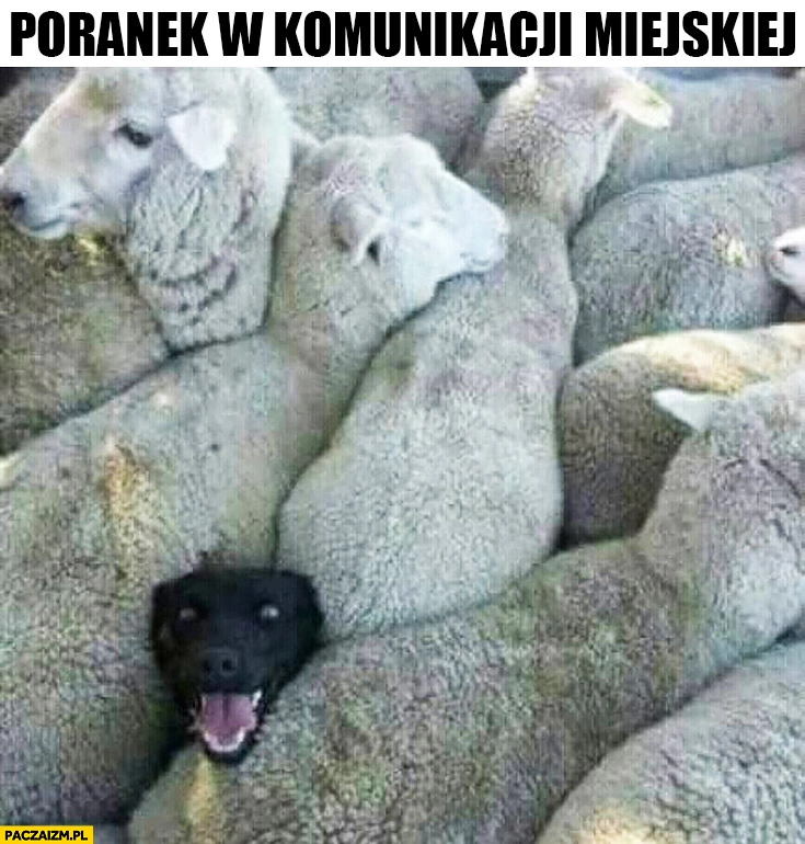 Poranek w komunikacji miejskiej pies ściśnięty z owcami