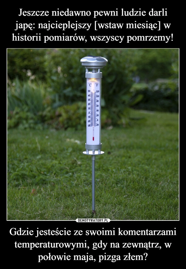Jeszcze niedawno pewni ludzie darli japę: najcieplejszy [wstaw miesiąc] w historii pomiarów, wszyscy pomrzemy! Gdzie jesteście ze swoimi komentarzami temperaturowymi, gdy na zewnątrz, w połowie maja, pizga złem?