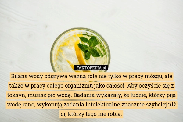 Bilans wody odgrywa ważną rolę nie tylko w pracy mózgu, ale także w pracy