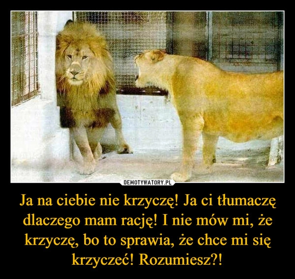 Ja na ciebie nie krzyczę! Ja ci tłumaczę dlaczego mam rację! I nie mów mi, że krzyczę, bo to sprawia, że chce mi się krzyczeć! Rozumiesz?!