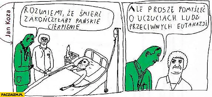 Rozumiemy, że śmierć zakończyłaby Pańskie cierpienie ale proszę pomyśleć o uczuciach ludzi przeciwnych eutanazji Jan Koza
