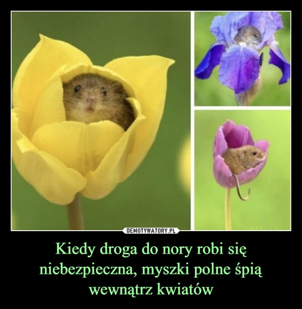 Kiedy droga do nory robi się niebezpieczna, myszki polne śpią wewnątrz kwiatów