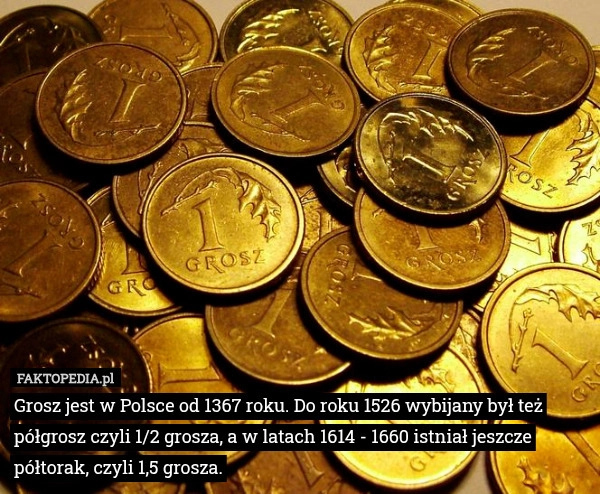 Grosz jest w Polsce od 1367 roku. Do roku 1526 wybijany był też półgrosz