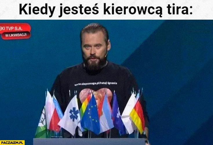 Kiedy jesteś kierowcą tira Stanowski z flagami na debacie