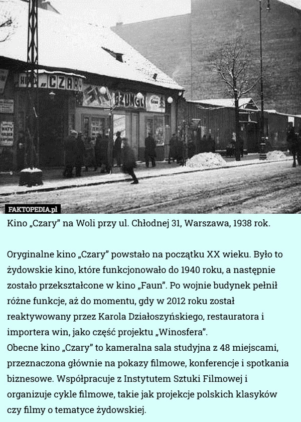 Kino „Czary” na Woli przy ul. Chłodnej 31, Warszawa, 1938 rok. Oryginalne...
