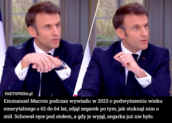 Emmanuel Macron podczas wywiadu w 2023 o podwyższeniu wieku emerytalnego