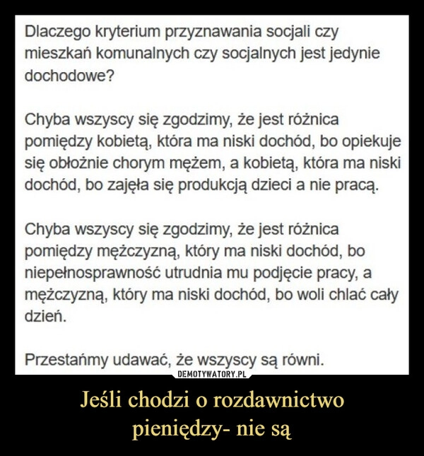 Jeśli chodzi o rozdawnictwo pieniędzy- nie są