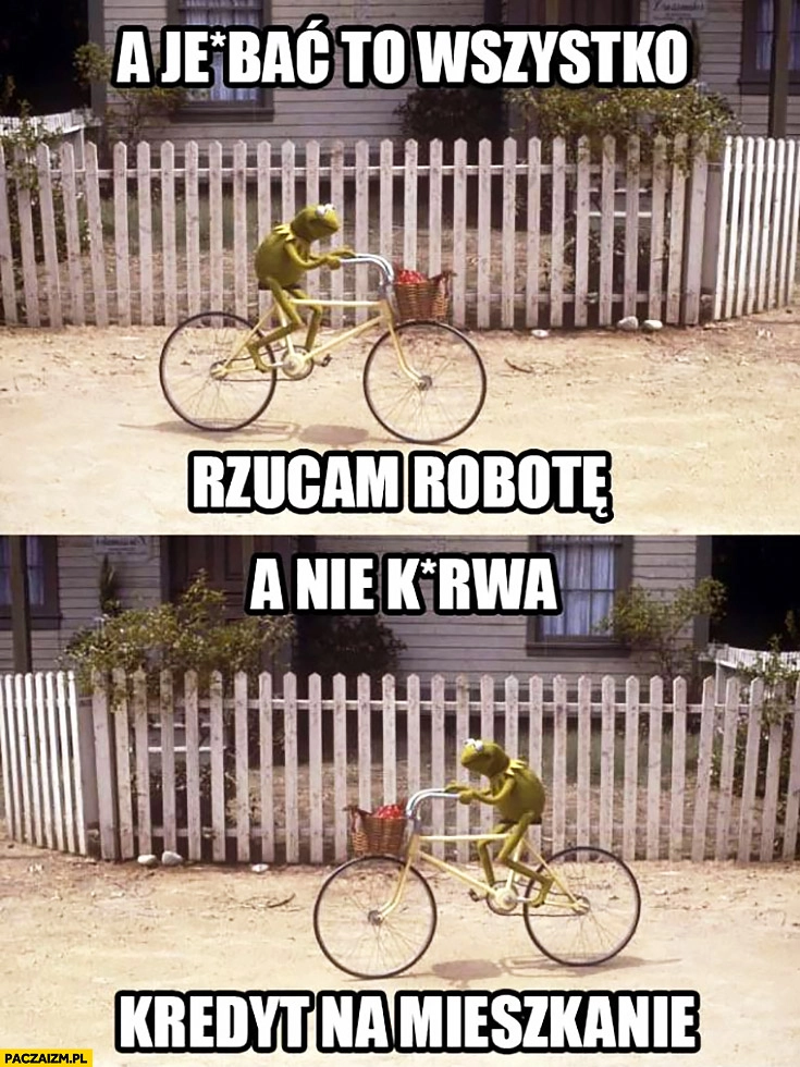 Walić to wszystko rzucam robotę, a nie kurna mam kredyt na mieszkanie Kermit na rowerze