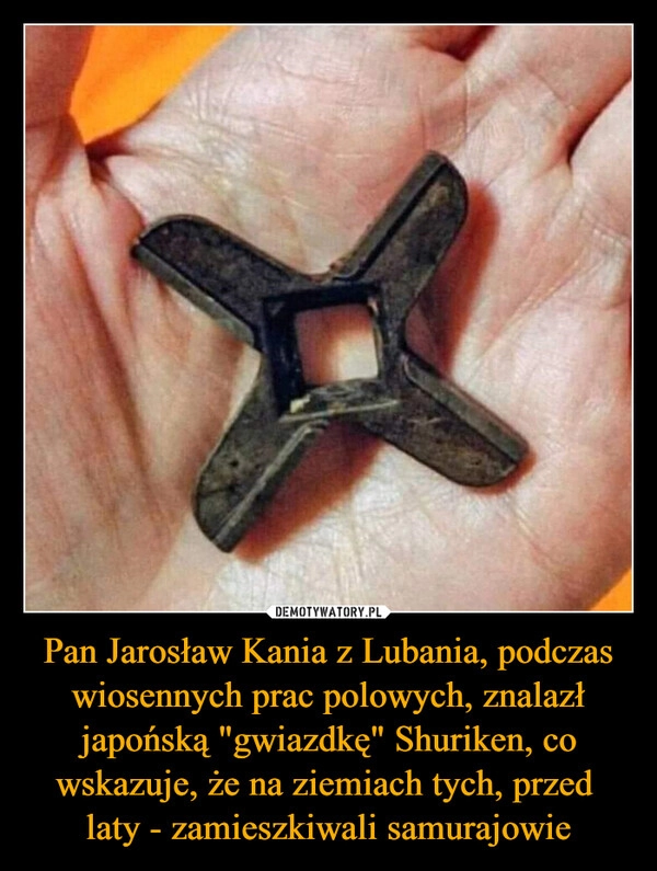 Pan Jarosław Kania z Lubania, podczas wiosennych prac polowych, znalazł japońską "gwiazdkę" Shuriken, co wskazuje, że na ziemiach tych, przed
