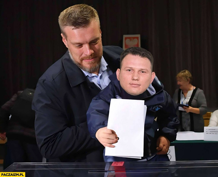 Zandberg podnosi dzieciaka Mentzena do urny wyborczej głosowanie wybory przeróbka