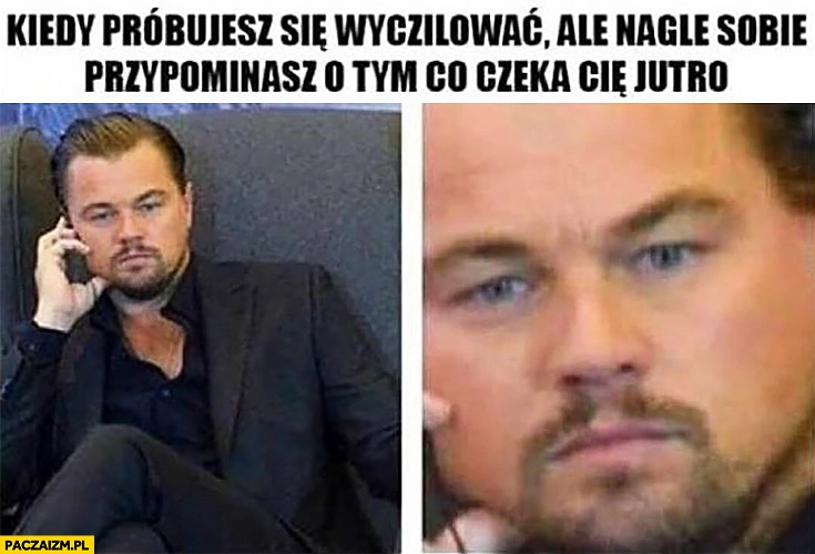 Kiedy próbujesz się wyczilować ale nagle sobie przypominasz o tym co czeka Cię jutro Leonardo DiCaprio