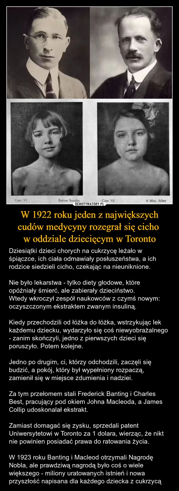 W 1922 roku jeden z największych cudów medycyny rozegrał się cicho w oddziale dziecięcym w Toronto