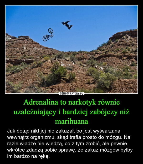 Adrenalina to narkotyk równie uzależniający i bardziej zabójczy niż marihuana