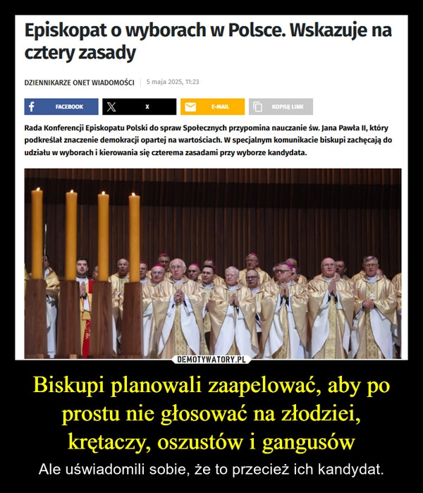 Biskupi planowali zaapelować, aby po prostu nie głosować na złodziei, krętaczy, oszustów i gangusów