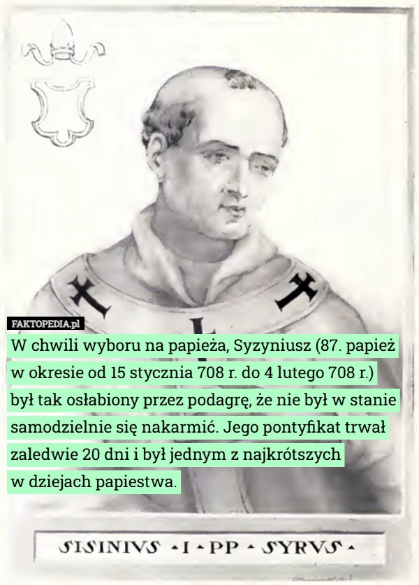 W chwili wyboru na papieża, Syzyniusz (87. papież w okresie od 15 stycznia...