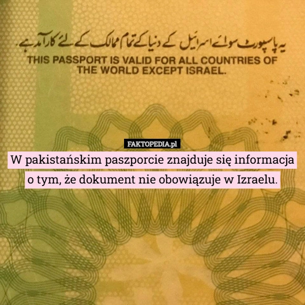 W pakistańskim paszporcie znajduje się informacja o tym, że dokument nie