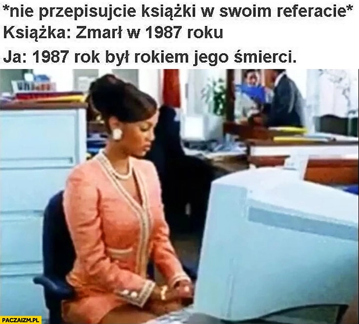 Nie przepisujcie książki w swoim referacie, książka: zmarł w 1987 roku, ja: 1987 rok był rokiem jego śmierci