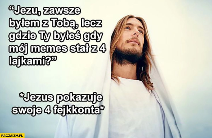 Jezu zawsze byłem z Tobą, lecz gdzie Ty byłeś gdy mój mem stał z 4 lajkami? Jezus pokazuje swoje 4 fejkkonta
