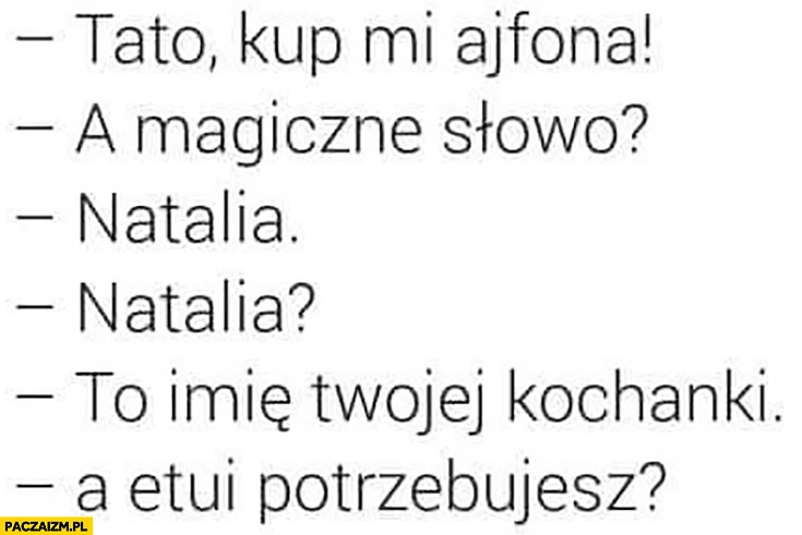 Tato kup mi ajfona, a magiczne słowo? Natalia to imię Twojej kochanki, a etui potrzebujesz?