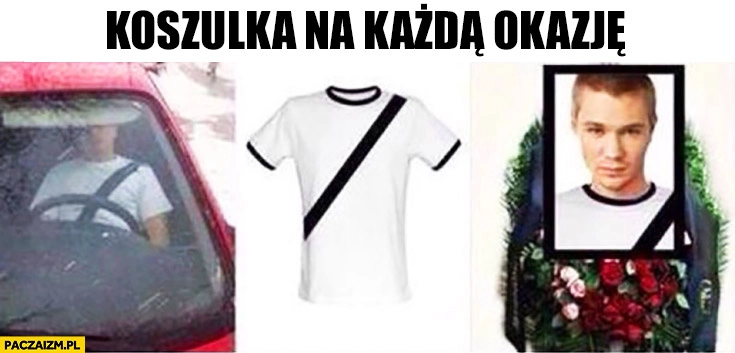 Koszulka z nadrukiem pasów bezpieczeństwa na każdą okazję: do auta, na pogrzeb