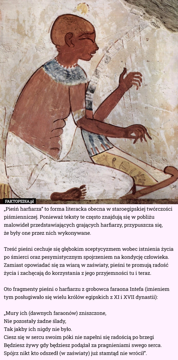 „Pieśń harfiarza” to forma literacka obecna w staroegipskiej twórczości...