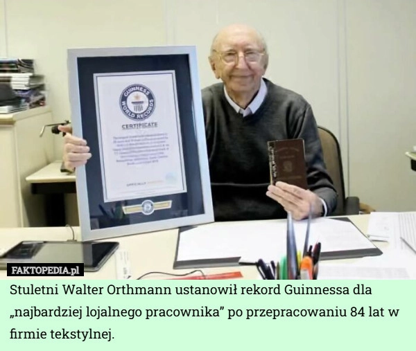 Stuletni Walter Orthmann ustanowił rekord Guinnessa dla „najbardziej lojalnego