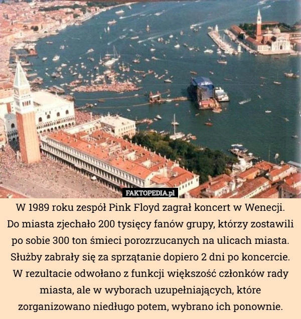 W 1989 roku zespół Pink Floyd zagrał koncert w Wenecji. Do miasta zjechało