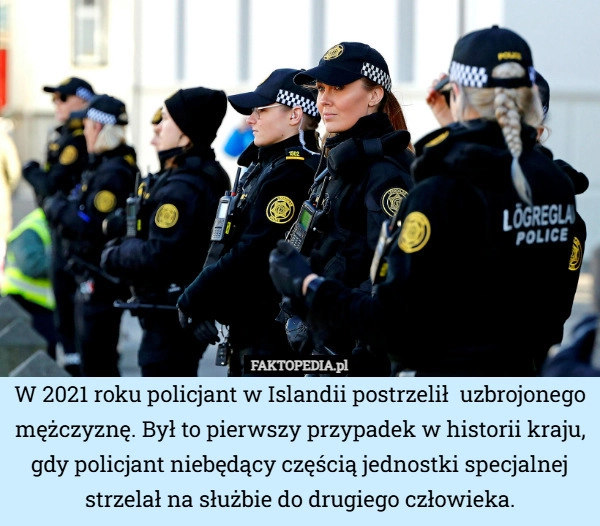 W 2021 roku policjant w Islandii postrzelił uzbrojonego mężczyznę. Był