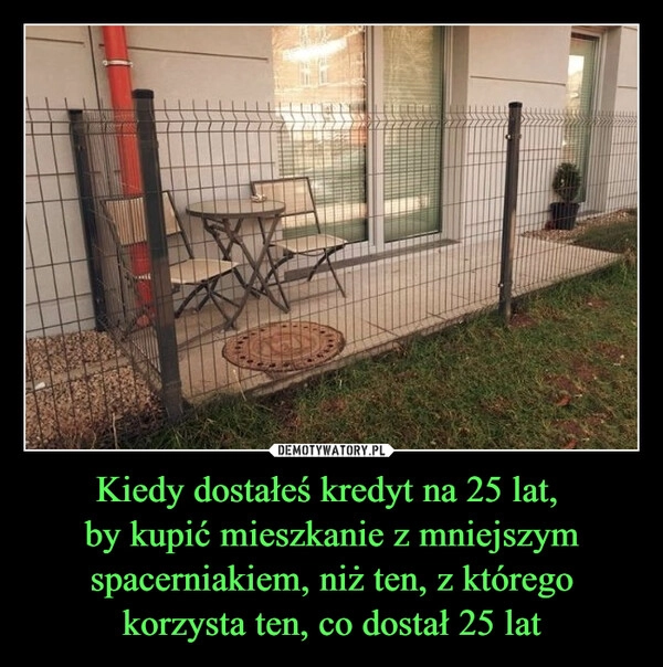 Kiedy dostałeś kredyt na 25 lat, by kupić mieszkanie z mniejszym spacerniakiem, niż ten, z którego korzysta ten, co dostał 25 lat