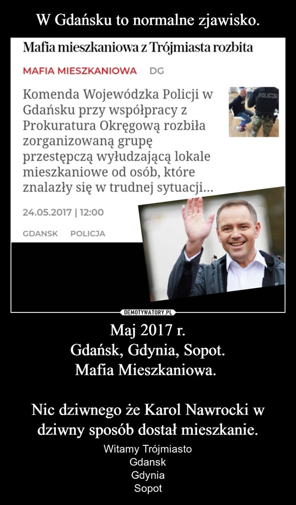 W Gdańsku to normalne zjawisko. Maj 2017 r. Gdańsk, Gdynia, Sopot. Mafia Mieszkaniowa. Nic dziwnego że Karol Nawrocki w dziwny sposób dostał mieszkanie.