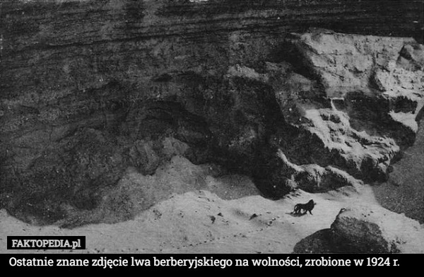 Ostatnie znane zdjęcie lwa berberyjskiego na wolności, zrobione w 1924 r.