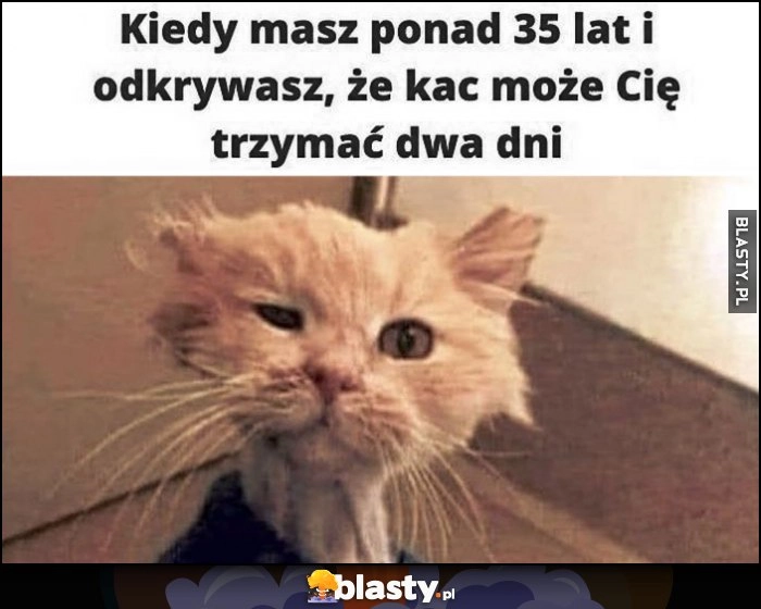 Kot kotek kiedy masz ponad 35 lat i odkrywasz, że kac może Cię trzymać dwa dni