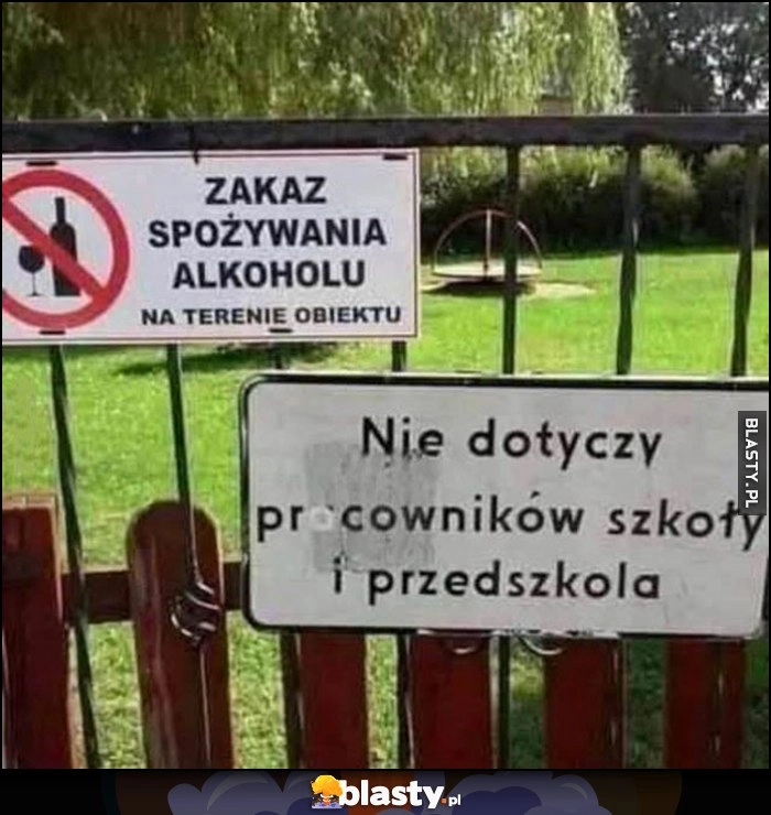 Zakaz spożywania alkoholu na terenie obiektu, nie dotyczy pracowników szkoły i przedszkola