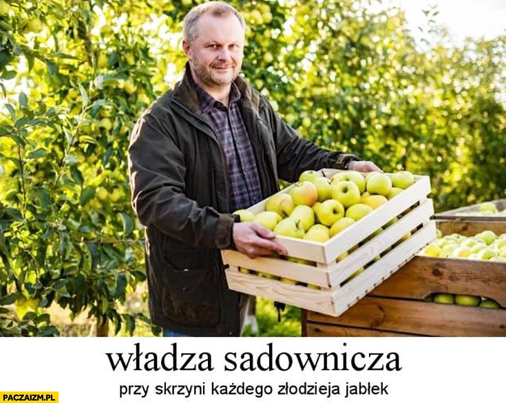 Władza sadownicza przy skrzyni każdego złodzieja jabłek