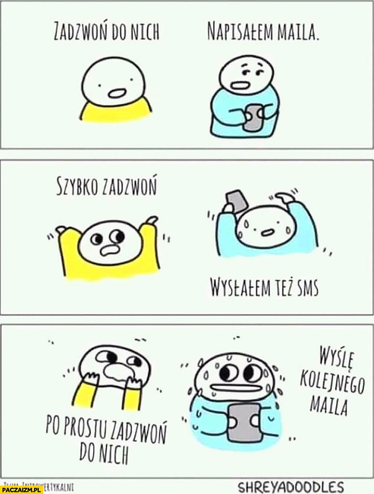 Zadzwoń do nich, napisałem maila, szybko zadzwoń, wysłałem też sms, po prostu zadzwoń do nich, wyślę kolejnego maila