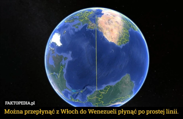 Można przepłynąć z Włoch do Wenezueli płynąć po prostej linii.