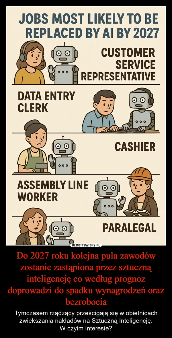 Do 2027 roku kolejna pula zawodów zostanie zastąpiona przez sztuczną inteligencję co według prognoz doprowadzi do spadku wynagrodzeń oraz bezrobocia
