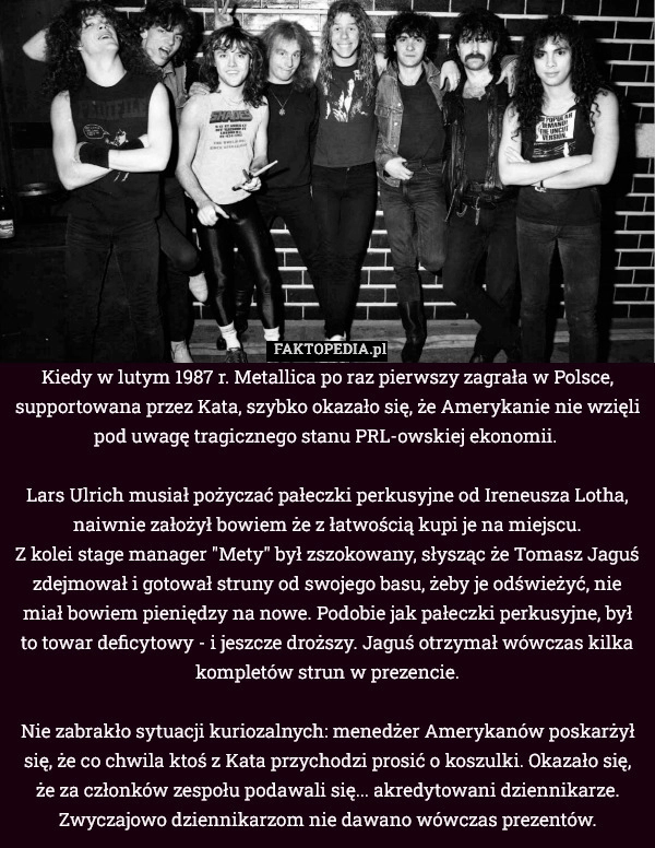 Kiedy w lutym 1987 r. Metallica po raz pierwszy zagrała w Polsce, supportowana