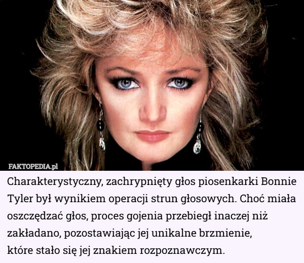 Charakterystyczny, zachrypnięty głos piosenkarki Bonnie Tyler był wynikiem...
